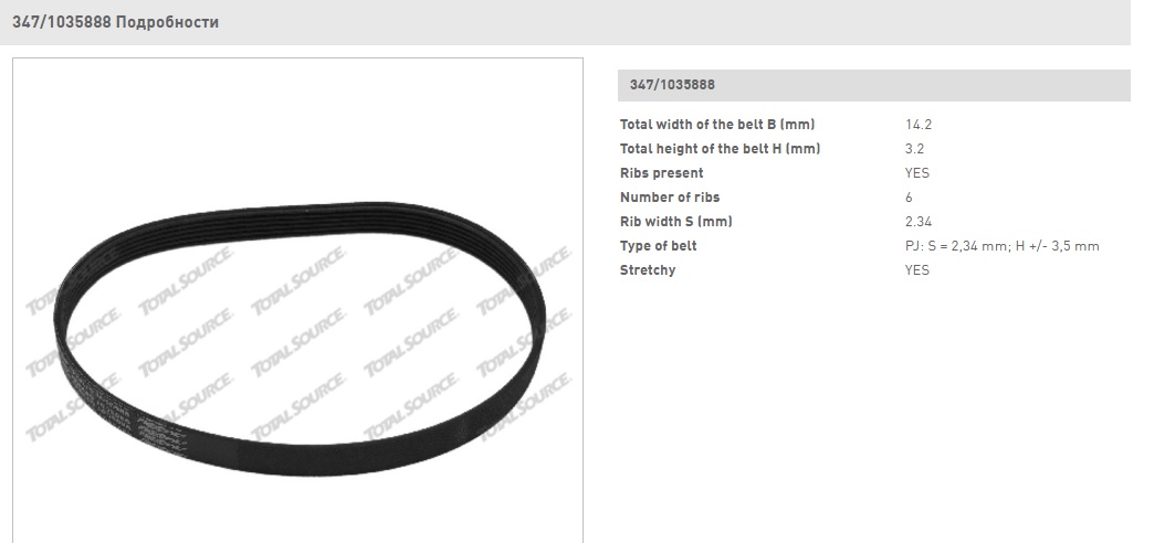 Ремень привода щетки (ремень генератора) TVH/1035888